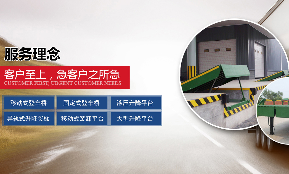隨著國內及國際市場需求的不斷擴大,公司也在不斷引進國內外的先進技術來充實自身。公司先后設計研發出了,大小型貨車配裝的:汽車液壓尾板,叉車裝卸貨用的:移動式登車橋;庫房外貨臺配裝的:固定式液壓升降平臺(貨臺高度液壓調節板);庫房內外高層輸送貨物:導軌式升降貨梯,液壓升降平臺,旋轉液壓升降臺,及百噸位大型升降臺,等多種的先進裝卸裝備,適應用于:工廠,廠礦,倉庫,化工,食品,郵政,流水線作業配套及物流運輸等眾多領域。
